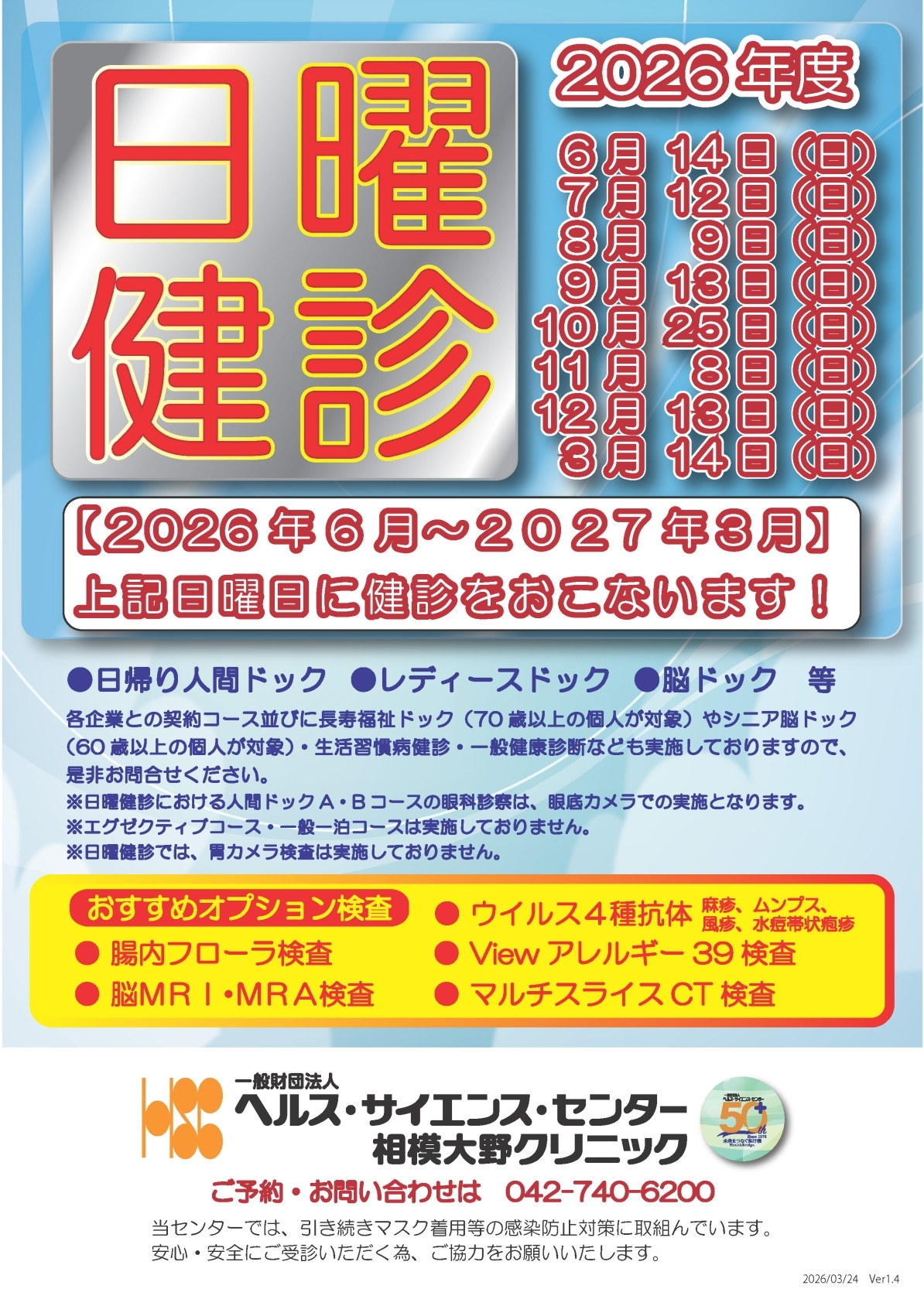 日曜日にも特定の日程で人間ドック・健康診断を実施しております。